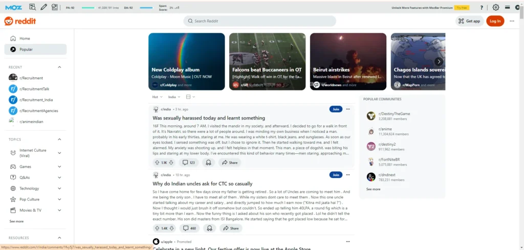 - Reddit: Basically the go-to for anything and everything. There’s a subreddit for every topic you can think of.