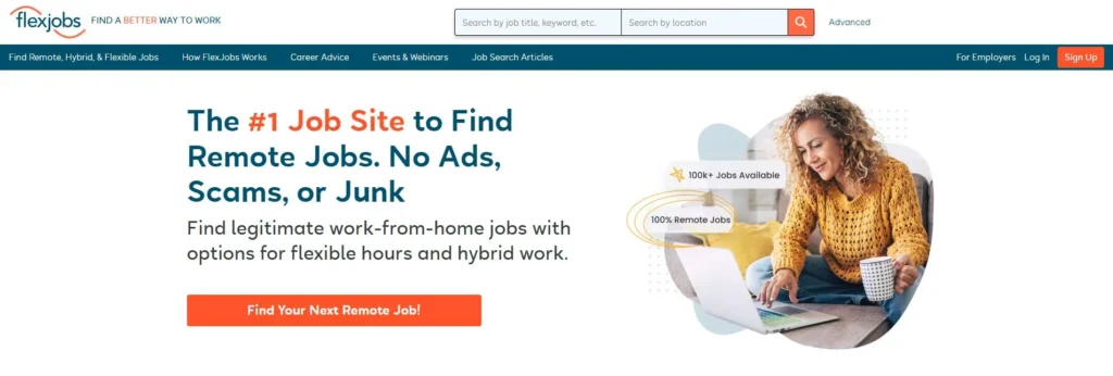 FlexJobs is a job-site founded in 2007 that specialises in listing vetted remote, work-from-home, hybrid and flexible-schedule roles.
