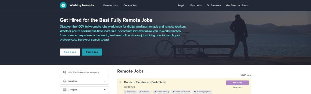 Working Nomads is a remote-job board launched in 2014 that curates fully remote opportunities worldwide across many categories.
